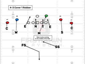 Post Views: 2,137 Cover 1 is a fairly simple coverage and it’s the man coverage preferred by most defensive coordinators. However, simply showing man and running it requires usually superior talent or players across the board who are exceptional in their technique. Whether you have the two things I described above or not, there will come a time when you want to change things up and throw a curve ball at the offense. If you love cover 1 but are looking for that curve ball you can throw while running this coverage then Cover 1 robber may be for you. For you players that are somewhat new to the game or just want a better understanding of the basics, this article is for you. The basics of 1 Robber are this. The defense will show two high safeties (one safety aligned deep on each hash) indicating that it may be a split field coverage (Cover 2, 2 man or cover 4). On the snap of the ball, one safety will roll down to the middle of the field to cut off or rob any routes coming to the intermediate middle of the field (low hole). The other safety will rotate to the deep middle to help with any routes going to the deep middle (i.e. post, seam routes). With that in mind, lets get a breakdown of the coverage responsibilities of the players in the example shown below CBs (C): Man to man outside shade on #1 unless abnormally wide split by WR. Sam (S): This could also be a nickel back. Man to man outside shade on #2 unless WR takes an abnormally wide split. Mike (M): Man to man on RB or #3 strong if offense is in an empty set. Will (W): This could also be a dime back. Man to man outside shade on #2 weak unless WR takes an abnormally wide split. Strong Safety (SS): Show high safety look then at the snap, roll down to the low hole and rob all routes coming to that area (dig, slant, cross, etc.) Free Safety (FS): Show high safety look then at the snap, rotate to the deep middle to help with deep middle routes (post, seam, go routes). Notes: Linebackers can be substituted out of this look for defensive backs if offense is using WRs and you feel there will be a mismatch. Cornerbacks should play their man to man responsibilities knowing that there is help inside at the low hole and deep post. This means do not over play inside releases and stems by WR and leave yourself open to giving up the outside. For example, undercutting an inside release and stem by a WR running a post corner route or whip route. You should aim to stay on outside shoulder of WR allowing robber and post safety to do their jobs while making it harder for WR to get back outside should he need to. Tips to being a good robber: Study your opponent and the quarterback in particular. Find the tendencies in terms of where he looks before making certain throws. Does the QB stare down his throws? Does he look one way then throws the other? Also, you may not want to drop immediately to the middle. Advanced safeties can come straight down and then move late to the middle. This gives the QB the illusion that the low hole is open before you suddenly appear in that area to pick off the throw. For my coaches reading this, if the team comes out in empty and your Mike backer would be a big liability, you can have the robbing safety pick up #3 and turn the Mike into the robber. This is not ideal from a surprise standpoint but it’s better than you getting surprised by a big play with a slot vs. an overmatched middle linebacker. You can alternate dropping either safety in the low hole. Sometimes the free safety can drop and the strong safety roll to the middle. If your strong safety is not that skilled in covering space then be careful with overusing this option. The post safety should also study the opposing QB and get a bead on how they attack with the deep ball. Do they stare down the throw or do they look off? Free safety should be able to cover from numbers to numbers. You are elite when you can get great reads and help a cornerback that is running deep on a fade near the sidelines. Your aim should be getting depth after the snap and stay high over the top of all the routes (Don’t see ghosts and chase intermediate routes leaving your man to man cover men hanging out to dry!!). Strong ball skills are great for post safeties in this coverage. You can grab a lot of interceptions. Spend time working on your ball skills. I hope you enjoyed this coverage explained. If you have further questions and / or you have any comments, feel free to contact me via email at: cwilson@alleyesdbcamp.com – Thank you for being a member. Author Recent Posts alleyesdbcampOwner at All Eyes DB CampChad Wilson is the founder of All Eyes DB Camp and a former standout defensive back for the Miami Hurricanes. After an elite collegiate career, Wilson spent a season with the Seattle Seahawks before transitioning into coaching. A 3-time Florida state champion defensive coordinator, he has spent over 20 years developing the "All Eyes" blueprint that has produced NFL All-Pros and stars like Xavien Howard, Patrick Surtain II, Tyson Campbell, Minkah Fitzpatrick and more. His coaching system is proven at the highest levels—his own sons, Quincy and Marco Wilson, both excelled as starters in the SEC before being drafted into the NFL.Chad is the author of "101 DB Tips"—The Ultimate DB Reference Guide. You can find more information on the manual and how to order your copy in the sidebar and footer of this page. Latest posts by alleyesdbcamp (see all) These 4 Drills Will Drastically Improve Your Off Man Coverage - February 25, 2026 How Elite DBs Read Route Concepts Before the Snap - February 25, 2026 When it Comes to Playing DB…. Smooth is Fast - February 18, 2026 Related Posts:Cover 3 Explained (video)Coverages Explained: How to Play Cover 4Coverages Explained: Cover 8Coverages Explained | 2 Trap Post navigation DB Tips | The Key to A Perfect Hip Flip Working the Pressure Release Press Man Drill